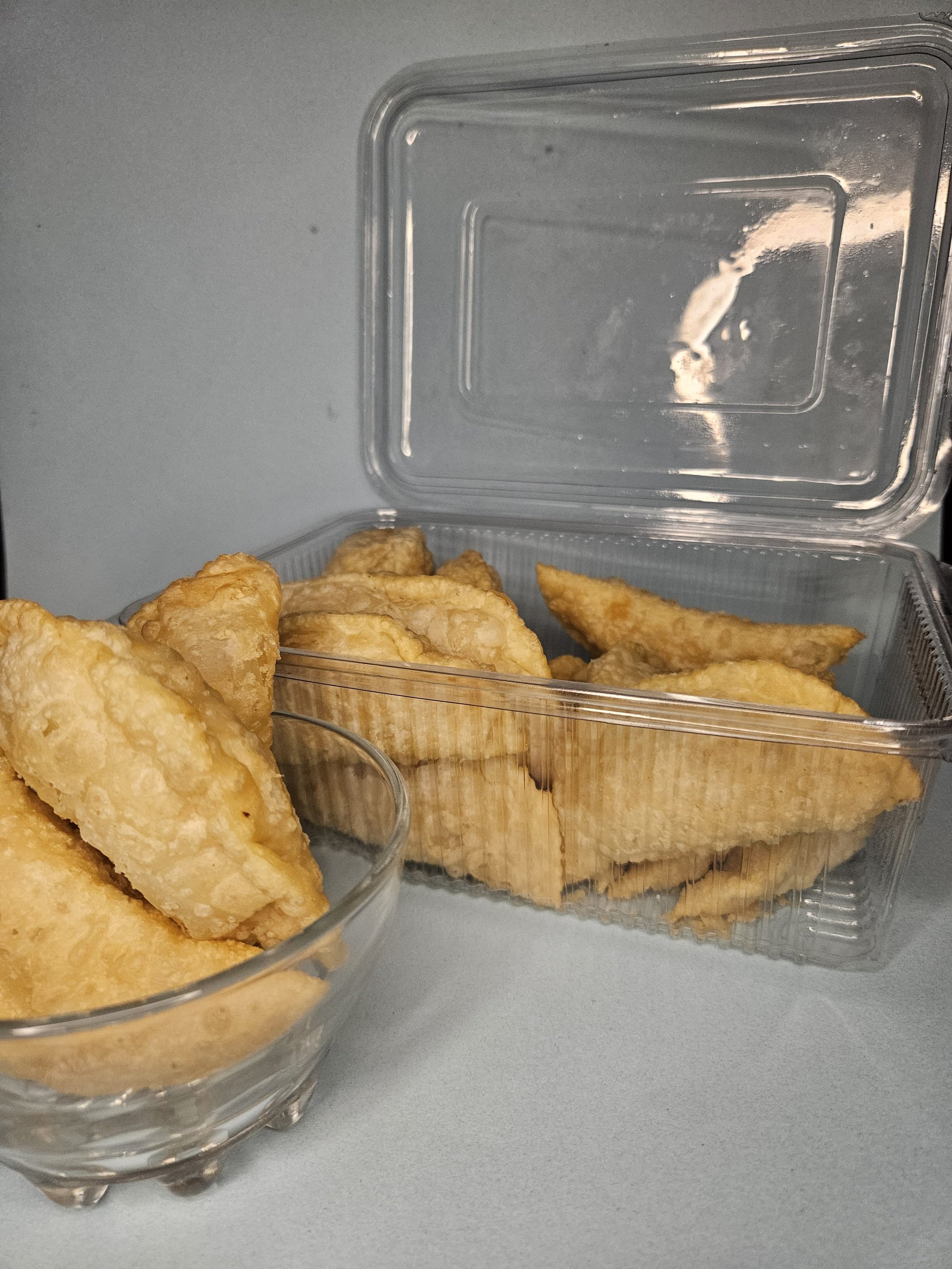Each karanji features a golden, crispy outer shell made from fine wheat flour, stuffed with a rich filling of grated coconut, jaggery, dry fruits, and cardamom. Deep-fried to perfection, our karanjis are light, flaky, and bursting with sweet, nutty flavor in every bite.