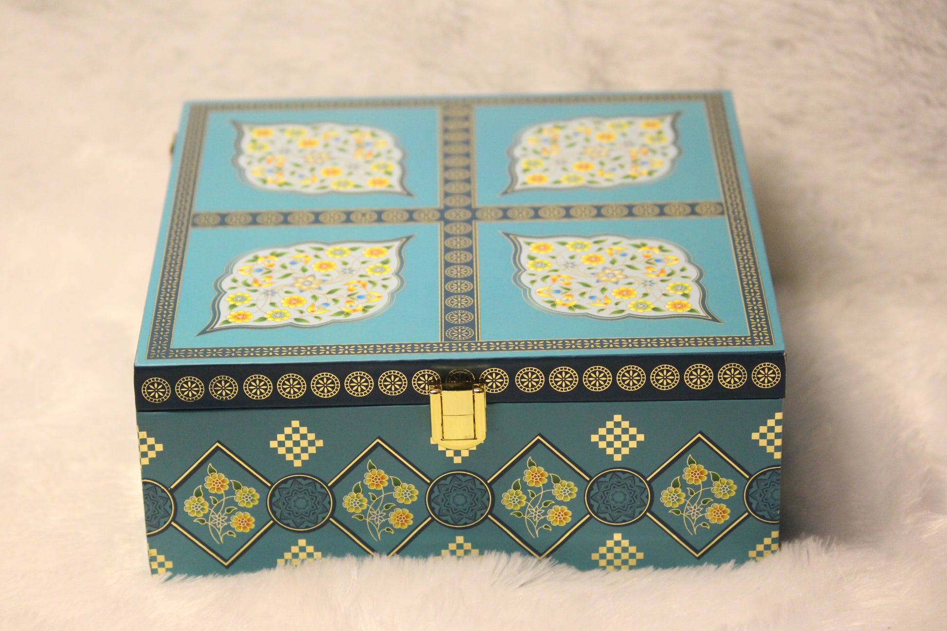 Celebrate the art of gifting with our Royal Mughal-Inspired Dry Fruit Gift Box, a luxurious 4-jar hamper filled with premium handpicked dry fruits. Encased in an exquisitely designed keepsake box featuring traditional Mughal art, this gift set blends timeless elegance with rich flavors.